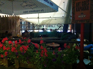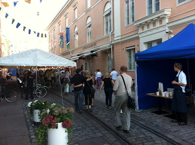On Saturday we found our way to the Design Market, and later to UFF (a second hand store). Madara got a great deal on a leather jacket, hopefully I can find something too. I did see many Iron Maiden shirts, tempting I know. We stopped at Cafe No 9, and aside from a grouchy server it was good. It was an older style inside (maybe 50s, or 60s) and the food was delicious. We then went to the design museum and pavilion there as well. The glasswork was by far the best part. The exhibit is of Finnish design from 1945 to 1967. No photos allowed, too bad. Later this evening there was a start to the open kitchen day in Helsinki, which involves many tents around the city serving all kinds of food. I stopped at one and had Kasvismuhennasta and some kind of roobis iced tea. A good way to finish the day.