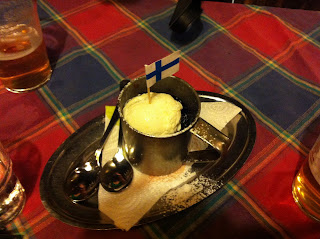 Tractors tractors everywhere! It was crazy. Some of the walls were made of old wagon wheels, there were skis (above) that surrounded the dance floor, old wooden buckets for over head light shades, and more tractors. The music that night also threw me off a little. It was old songs, like “I will survive” but with Finnish singing. I kept trying to listen for the parts, and word I knew, but what I was hearing was far from matching. It was pretty cool, but threw me off. Later this night we found our way to a place that had more than 3 beers. We managed to navigate to a place called ‘One Pint Pub’, it was pretty interesting. It was small, maybe able to host 20 people, had about 10 beers on tap, and I think it was supposed to have up to 100 different kinds in the bottle. Based on the list I saw just from Catalonia I’d believe it. Although I did want to try something local I was drawn in by one labelled as a Scottish stout. I’ve had Guinness and Murphy’s several times, but a Scottish stout? What could that taste like? So we each had one. It looked and tasted maybe a bit more like a porter. It certainly was not as creamy as the other two, but with a distinct cask taste. Maybe not my favourite, but still a good choice.