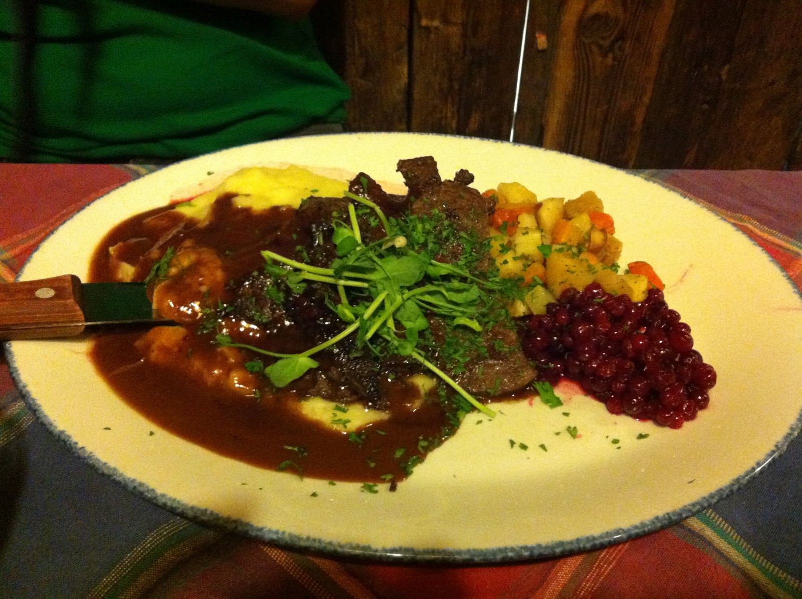 (right: I forget exactly, some kind of Reindeer dish)